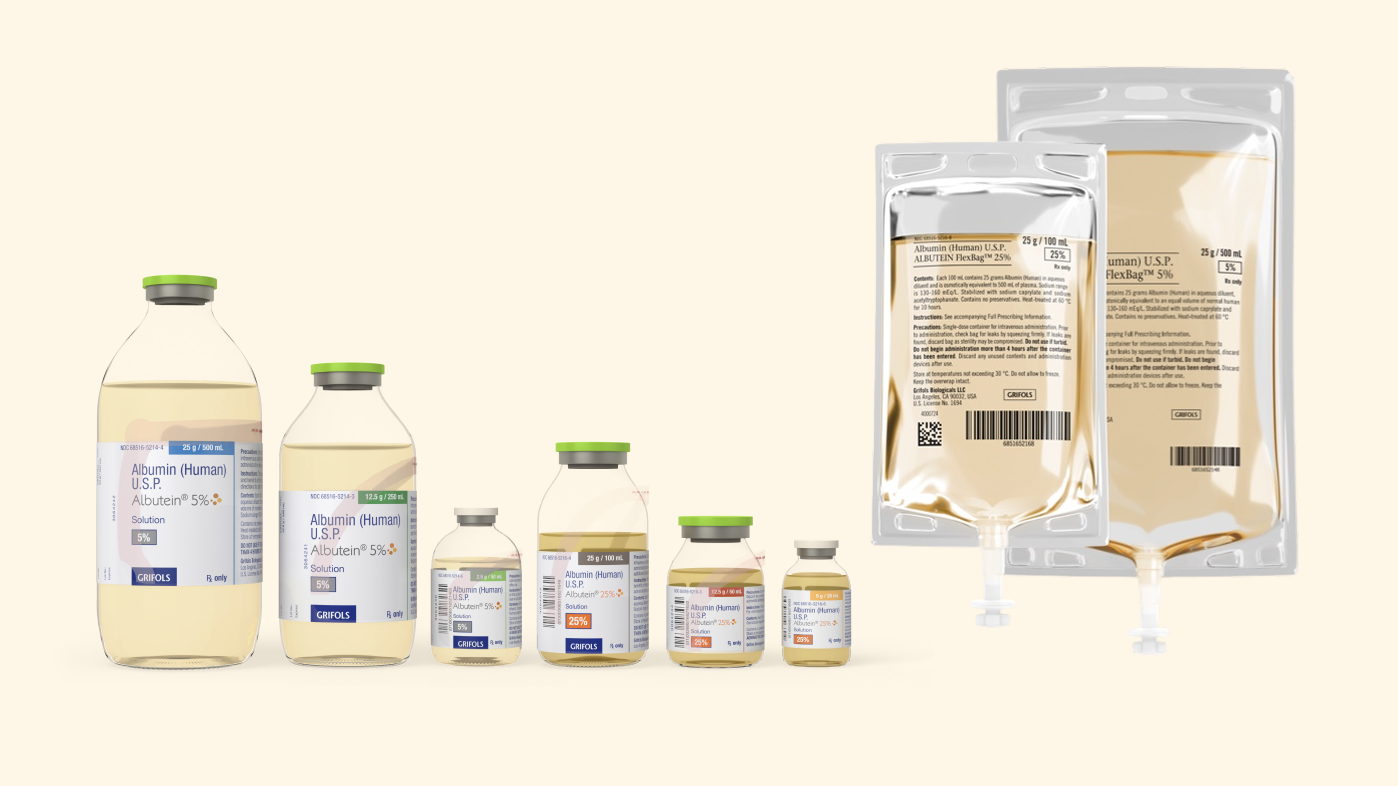 Please see full Prescribing Information for ALBUTEIN FlexBag 5%, ALBUTEIN FlexBag 25%, ALBUTEIN vial 5% and ALBUTEIN vial 25%